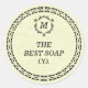 The sticker features a modern and clean design with sophisticated fonts and subtle illustrations that complement the aesthetic of your soap packaging.