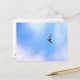 Stylised Swallow soaring through a blue dreamy cloudy sky.