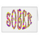 Purple, pink, yellow and green swirl design stylised letters form the word Sober in this 60’s inspired Retro graphic