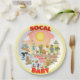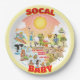 This Southern California scene has it all – a surfer hangs ten while a killer whale leaps out of the water, a woman enjoys her beverage as a T-rex roars, and much more…