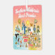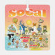 A cartoon of Southern California—showcasing Los Angeles, Orange County, San Diego, and other cities—cartoon characters of all sorts swim and splash and play beneath the bright California sun shining high above it all.