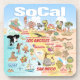 Bright and happy scene - a cartoon map view of Southern California - charming characters enjoy the warm SoCal sun - Los Angeles, San Diego, Anaheim, Santa Barbara, Riverside, Palm Springs and El Centro are featured - Anza Borrego Desert State Park and Joshua Tree National Park are included as well as the border cities of Tijuana, Tecate and Calexico in Mexico.