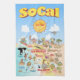 Bright and colourful scene offers a spectacular view of Southern Cal - classic characters frolic on the beach and desert of SoCal showcasing Santa Barbara, Los Angeles, San Diego, Riverside, Palm Springs, Anaheim, Anza Borrego and Joshua Tree parks as well as the border cities of Tijuana, Tecate and Mexicali. This charming scene has it all – a surfer hangs ten while a mermaid lounges on a rock, a killer whale leaps out of the water, zoo animals greet the tourists, a muscular beach couple both flex to impress as a T-Rex roars a challenge and a tank rumbles into position and much more…