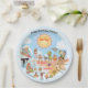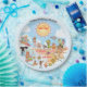 A cartoon of Southern California – showcasing Los Angeles, Anaheim, San Diego. Cartoon characters of all sorts swim and splash and play beneath the bright California sun shining high above it all.