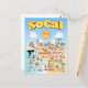 Colourful view of Southern California - wacky characters frolic on the beach and desert of SoCal showcasing Los Angeles, Santa Barbara, San Diego, Riverside, Palm Springs, Anaheim, Anza Borrego and Joshua Tree parks - also the border cities of Tijuana, Tecate and Mexicali. This SoCal map has it all – a surfer hangs ten while a mermaid lounges on a rock, a killer whale leaps out of the water, zoo animals greet the tourists, a muscular beach couple both flex to impress as a T-Rex roars a challenge and a tank rumbles into position and much more…