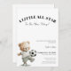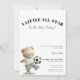 Celebrate the mommy-to-be with this Soccer Baby Shower Invitation | A Little All-Star design featuring a watercolor teddy bear holding a soccer ball. The phrase “A Little All-Star Is On the Way!” is part of the fixed design and cannot be edited, while all other text can be personalized directly on Zazzle. Perfect for a baby boy shower or sports-themed celebration — this charming and modern invitation adds a playful touch to your special day.