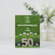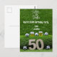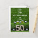 Soccer ball 50th birthday with beer on green postcard