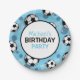 Soccer Ball and Goal Blue Personalised Paper Plate