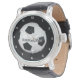 Soccer ball watch for him. Custom, Name, steel black leather men's watch. Personalise it with your name.