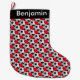 Tiled Soccer Ball Design Christmas Stocking, with customisable background colour and personalisation on each side. Fun idea for the soccer enthusiast on your holiday shopping list.