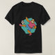 I give wanted to give this a 4 instead of a 5 because these Basic DARK T0shirts run unexpectedly SLIM or Narrow. Which is great if you do not have a potbelly, but I have a paunch. It isn't the shirt's fault that I've got a beer belly. The design and shirt itself is a quality cotton shirt. The color is more of a deep purple, but still a very pretty color. The Basic DARK T-shirts run a bit SLIMMER than the Basic Ts. The neck is a fraction narrower (or seems to be narrower) also. I'm a paunchy middle-aged woman and my neck is 12 inches (31cm) thick and the neckline fell about the same as in the photo of the man, and I had the desire to tug it a bit. So if you're a thick necked man or like loose shirts, be aware these are slimmer shirts. Once I get rid of my lockdown paunch it'll look great. The shirt washed well in cold water with no apparent bleeding. We don't have a dryer, so it hung dry. Did not shrink. Love the colors and the design. The design looks smaller on my shirt than it does on the model on-line. But still, it looks good on the shirt. The printing looks as it does on the model, just the size seems fractionally smaller. Washed garment in cold water, hung dry and design appeared unaffected.