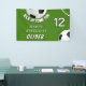 Soccer Ball Football Grass Sports Kids Birthday Party Backdrop Banner. The design has a fun text "Kick up some fun" and soccer balls on a green background. Personalise with your age and name.