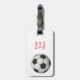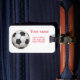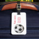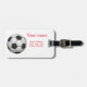 A great luggage tag that will let you stand out from the crowd. It features a graphic of a soccer ball on the front and back. You can customise the red text. Perfect for your luggage or soccer bag.