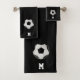 Soccer ball and monogram on black Bath Towel Set. Elegant simple design for soccer lovers!