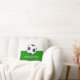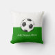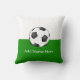 A soccer ball on white and green background. Custom throw pillows. Edit name to customise.