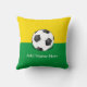 A soccer ball on yellow and green background. Custom throw pillows. Edit name to customise.
