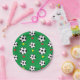 Soccer Ball Paper Plates designed by Nisha Prabhu. This soccer ball themed party plates is just what you need to express your love for soccer. The design features a large soccer balls with red and yellow flags on green background. Sports gifts for soccer coach, soccer team, soccer fans, soccer player, soccer lover.