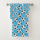 Soccer fans will love this custom bath towel set decorated with a classic soccer ball pattern! It's shown on a blue background colour, but you can select your favourite colour and adjust the pattern size also. Personalise with any text if desired. Makes a fun and unique gift for any soccer kid, player, coach or fan!