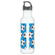 Water bottle with repeating soccer ball pattern overlay-ed on blue. With a white stripe down the middle and a personalised name in bold black lettering. Edit the field called "your name" to put in the name of your team, kid. Or leave it blank and sharpie it on later yourself.