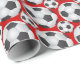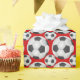 This sports themed design features a pattern of graphic illustrations of a soccer ball also known internationally as a football.