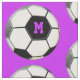 Personalise this soccer ball design on a purple background with your initial. Original design by Holiday Hearts Designs for TJsSportsmania. Click "customise" to change background colours.