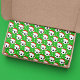 This Christmas tissue paper features soccer balls wearing Santa's hat with snowflakes twirling around on a Christmas green background.