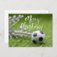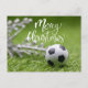 Soccer ball with Christmas decoration on green Holiday Postcard