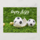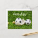 Soccer ball with Eggs Easter on green grass Postcard