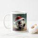 Soccer Ball with red Santa Hat Name Mug. This Christmas mug is a perfect gift for kids and teens. Add your name or erase it.