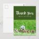 Soccer ball with thank all what you do on green postcard