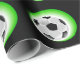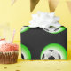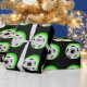 Wrapping paper shown with a sports soccer ball print on a black background. Customise this item or buy as is.