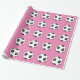 Image of soccer balls on a pink background. Custom wrapping paper rolls for sports fans.