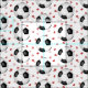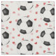 This soccer themed fabric features a simple drop pattern of black and white soccer balls surrounded by scattered pink and red confetti hearts on a white background - the soccer balls measure approximately 1-1/2 inches, but the pattern can be scaled to your liking - by katz_d_zynes