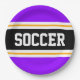 SOCCER Black Bright Purple Yellow Racing Stripes Paper Plate