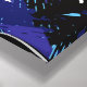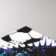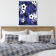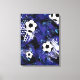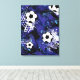 This stretched canvas wall art is shown with a colourful blue multi colour soccer ball art print.