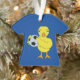 A yellow chick holding a soccer ball is a humourous sport design for soccer players and coaches at back to school, birthdays and holidays.