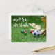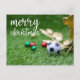Soccer is one of the most popular sports in the world, and Christmas is a time when people all over the planet come together to celebrate. What better way to spread some holiday cheer than with a festive soccer-themed postcard? This card features a soccer ball sitting on a bed of green grass,. The perfect way to wish someone a happy holiday season, whether they're a fellow soccer fan or not!