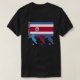 Three Costa Rican soccer players in silhouette play in front of the Costa Rican flag. Available in men's, women's, children's and infant apparel.