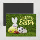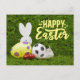 Soccer Easter eggs for easter holiday on green Postcard