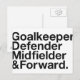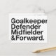 Goalkeeper, Defender, Midfielder & Forward.