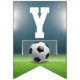 Football / soccer field happy birthday banner with customisable text. Great for sports fans and players, women / girls and men / boys.
