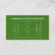 Whether you call it soccer or football, the game is loved by millions. On this business card, a soccer ball is cropped off on the bottom of the card on a bed of grass waiting to be kicked. Main contact information prints against the grass with web information printing on the ball itself. The reverse shows a diagram of a soccer field against green. A tagline or other information prints above. Perfect for soccer or football coaches, teams, football clubs, sporting good stores or any sports retailer. Available with matching products.