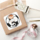 A cute soccer design for the soccer fan or soccer player, featuring a soccer girl in a black and white soccer uniform holding a soccer ball. The young soccer star is standing in front of a large black and white soccer ball. Perfect for a Birthday gift or party favour. Soccer Boy and other team colours available. If you would like a different colour combination, please contact us through the CelebrationBazaar store.