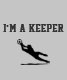 This design is perfect for any goalkeeper... your keeper on the field & a "keeper" off the field. The front says "I'M A KEEPER" with a silhouette of a diving goalie. The back says "My goal is to stop yours."