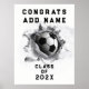 Flying soccer ball design and congrats line for senior soccer team player. Edit text to add name and year.