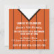 This jersey's is in orange and black pinstripes with black v-neck collar.
