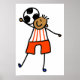 Cute whimsical cartoon illustration of a little boy playing with a soccer ball and showing off his ball skills. Easily customise and choose your own background colour or add text. Image available on various gifts and products.