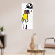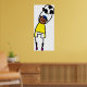 Cute whimsical cartoon illustration of a little boy making a goal keeper save. Easily customise and choose your own background colour or add text. Image available on various gifts and products.