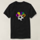 I give wanted to give this a 4 instead of a 5 because these Basic DARK T0shirts run unexpectedly SLIM or Narrow. Which is great if you do not have a potbelly, but I have a paunch. It isn't the shirt's fault that I've got a beer belly. The design and shirt itself is a quality cotton shirt. The color is more of a deep purple, but still a very pretty color. The Basic DARK T-shirts run a bit SLIMMER than the Basic Ts. The neck is a fraction narrower (or seems to be narrower) also. I'm a paunchy middle-aged woman and my neck is 12 inches (31cm) thick and the neckline fell about the same as in the photo of the man, and I had the desire to tug it a bit. So if you're a thick necked man or like loose shirts, be aware these are slimmer shirts. Once I get rid of my lockdown paunch it'll look great. The shirt washed well in cold water with no apparent bleeding. We don't have a dryer, so it hung dry. Did not shrink. Love the colors and the design. The design looks smaller on my shirt than it does on the model on-line. But still, it looks good on the shirt. The printing looks as it does on the model, just the size seems fractionally smaller. Washed garment in cold water, hung dry and design appeared unaffected.