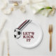 Soccer Maroon Stripes Let's Kick It Birthday Paper Plate